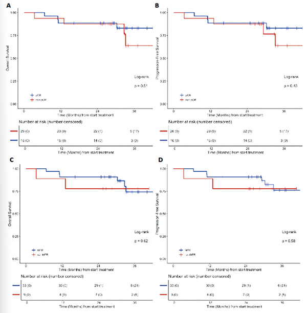 EFS/OS无显著差异:36个月EFS率和OS率在ICI组和单纯手术组分别为70.4% vs. 80.6%和72.7% vs. 90.4%。新辅助ICI或FLOT治疗后存在残余淋巴结阳性(ypN+)、ypT4分期状态或未达到病理缓解与较差的EFS/OS相关。 (编译 高阳)