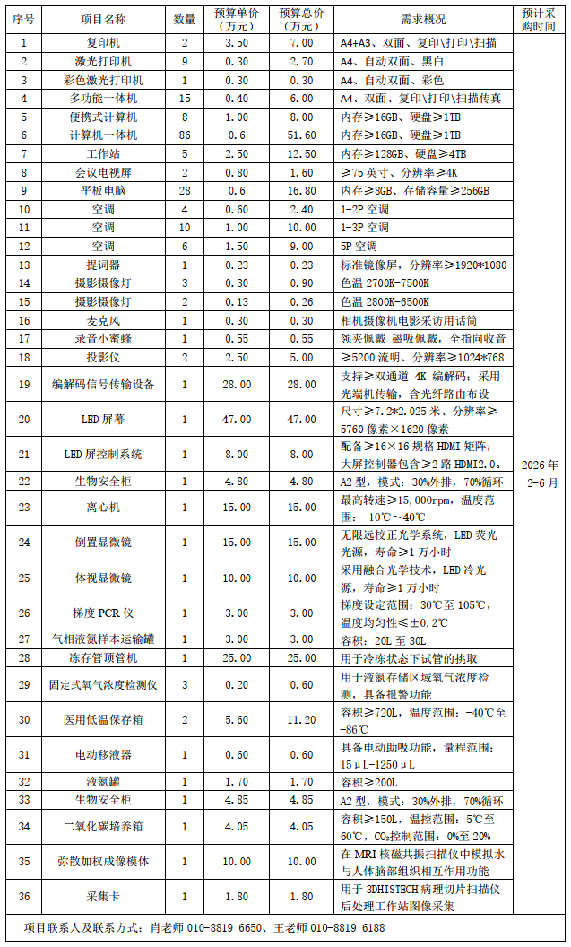 为便于供应商及时了解我院采购信息,保障我院采购需求调查工作开展,参照《财政部关于开展政府采购意向公开工作的通知》(财库[2020]10号)等有关规定,现将我院以下采购意向公开如下: