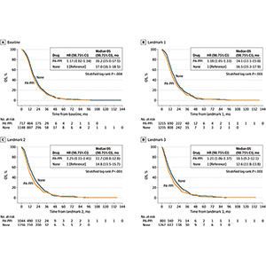 单变量分析显示,PA-PPI治疗患者在所有4个时间节点的PFS和OS均更差。校正年龄、性别、体能状态、类固醇使用、切除范围/程度、MGMT状态后,多变量分析确认,使用PA-PPI后显著缩短的PFS差异可见于里程碑节点1时(HR=1.14,95%CI 1.01~1.28)、里程碑节点2时(HR=1.26,95%CI 1.09~1.44)和里程碑节点3时(HR=1.31,95%CI 1.10~1.56),显著缩短的OS差异可见于里程碑节点1时(HR=1.34,95%CI 1.08~1.66)和里程碑节点2时(HR=1.14,95%CI 1.01~1.29)。