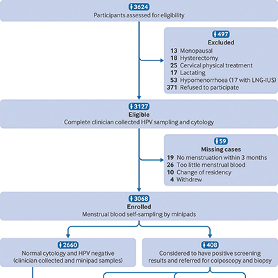 武汉大学中南医院胡争、华中科技大学同济医学院田训等发起并完成了一项大规模社区研究,研究结果显示,使用标准化“迷你巾”采集月经血进行HPV检测,是一种能够替代传统临床医生取样的、有效且可靠的宫颈癌初筛方法,用于检测高级别宫颈病变时敏感性达90%以上,与临床医生采样的方式相近,且具备极高的阴性预测值。研究团队还开发了配套的小程序用于查询结果,形成一套完整的筛查流程。(BMJ. 2026年2月4日在线版)