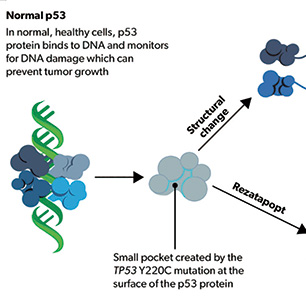 美国MD Anderson癌症中心Dumbrava等报告,在多线治疗失败的、TP53 Y220C突变的实体瘤患者中,rezatapopt最常见的不良事件是恶心和呕吐。其对多瘤种均有抗肿瘤活性,为p53再激活提供了概念验证。[N Engl J Med. 2026;394(9):872-883.]