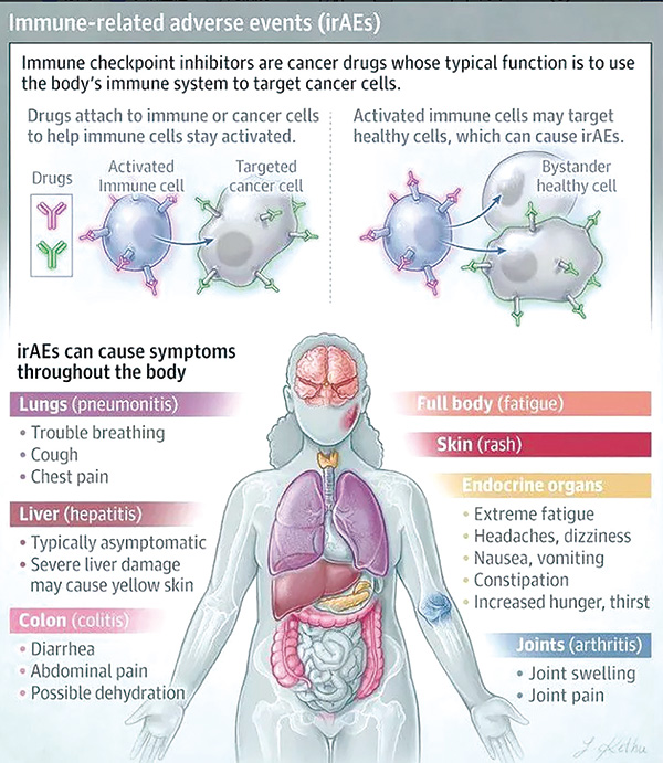 结果显示,在2794例接受ICI单药治疗或与其他疗法联合治疗(不含联合靶向治疗)的患者中,271例(10%)患者因irAE而停止ICI治疗,因irAE停药前的中位ICI治疗持续时间为5.9个月(0.03~73.5个月)。