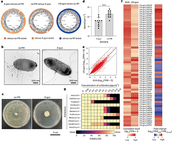 对AUN的基因特征分析显示,A-gyo相比市售的普通奇异变形菌,缺少菌毛和黏附素等致病因子基因,这可能是它能在活体中存活的原因。UN-gyo与市售普通沼泽红假单胞菌的基因特征基本一致。