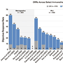 这种疗效差异促使研究者进行了一项文献检索,旨在找出在经治mCRC中报道了这两组患者(NLM vs. LM)的ORR或中位总生存期(OS)的免疫治疗临床研究(无论是单药还是联合治疗)。