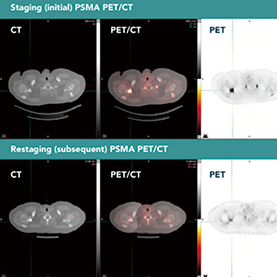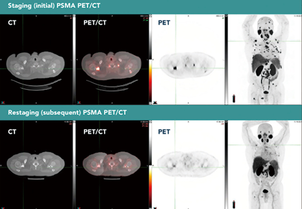 PSMA-PET分期在肿瘤结局预测方面具有重要作用。术后60个月,PSMA PET阴性患者对比PSMA PET阳性患者的结局更好,无生化复发生存率分别为75.1%和45.4%,无转移生存率分别为95.5%和75.8%。