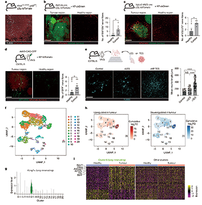 实验证实,肿瘤细胞分泌了神经生长因子等物质,诱导迷走神经向瘤内生长,并使其重编程,感觉神经功能、免疫反应和神经生长等相关基因表达显著上调。
