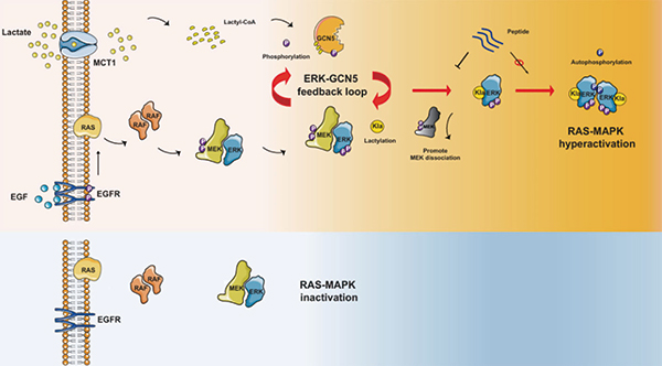 该研究证实,乳酸并非代谢废物,而是驱动肿瘤进展的重要信号分子。该研究还揭示了RAS–ERK信号通路的全新调控方式,为RAS–ERK持续激活型肿瘤的靶向治疗,提供了新的理论基础和干预思路。